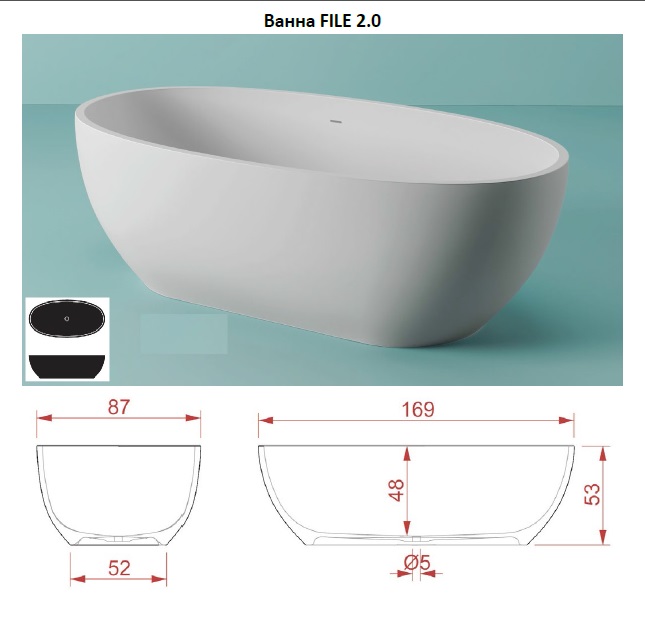 Artceram FILE Ванна из искусственного камня Livingtec 169х87х53 см, (без сифона ACA062), отдельностоящая, цвет белый глянцевый