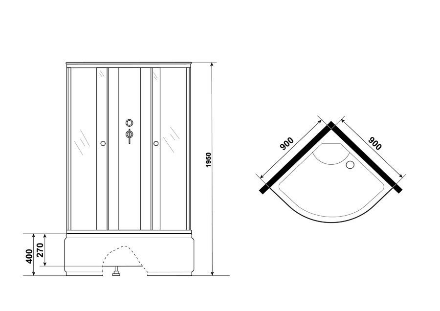 Душевая кабина Niagara Eco E90/40/MT/BK (90х90х195) высокий поддон(40см),стекло матовое