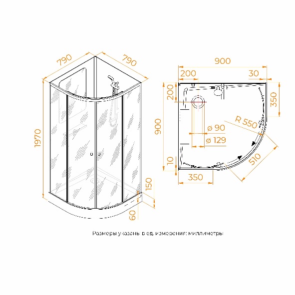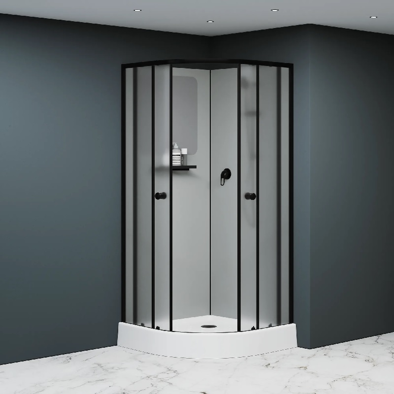 Душевая кабинка полностью в раме, в которую установлено безопасное, закалённое стекло 5 мм. При открытии 2 полотна двери плавно сдвигаются в разные стороны, раскрывая широкий вход. Рабочий механизм – на каждом полотне по 4 крепления с подшипниковыми роликами, плавная и бесшумно откатывают стеклянные полотна.
