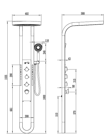 Душевая панель Black&White W075C