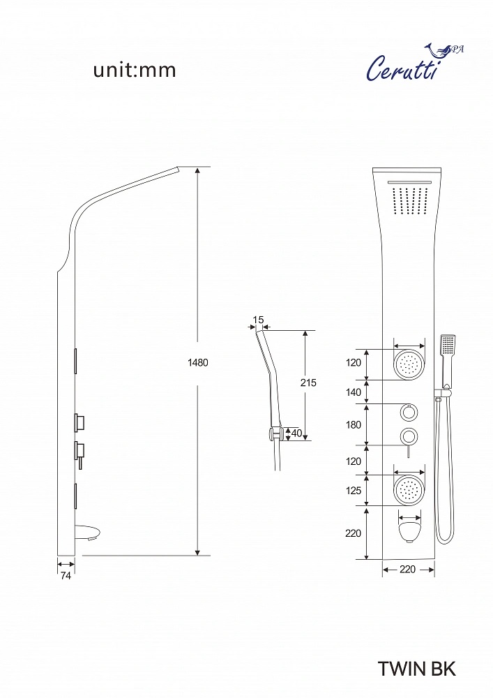 Тип душевая панель Ширина, мм 220 Высота, мм 1480 Глубина, мм 480 Цвет серебро Тип управления механическое Радио нет Количество коробок 1 Материал колонки нержавеющая сталь Количество форсунок 2 Гидромассаж есть Размер упаковки (ДхШхВ), мм 1580х230х530(200) Управление однорычажное Полка нет Материал душевого шланга гибкий (PVC с защитой от излома и перекручивания) Верхний душ тропический ливень, водопад Объем, м3 0,132 Вес, кг 8,1 Гарантия 2 года Страна Италия Материалы для скачивания.