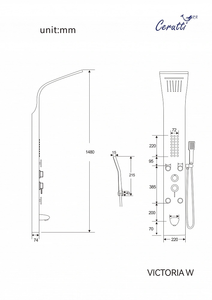 Удобная и многофункциональная душевая панель VICTORIA W предназначена для установки внутри душевых уголков, ограждений, а также совместно с ванной.