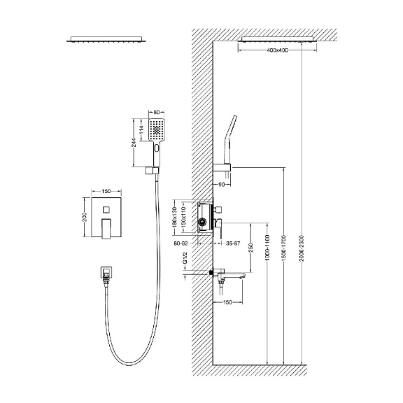 Встраиваемая душевая система Selene 2039, относится к премиальному сегменту, предназначена для монтажа в полой или твердой стене. Встроенный потолочный душ большого размера создает имитацию проливного дождя, вода обливает человека целиком. Регулируя напор воды можно получить массажное воздействие, что очень полезно для здоровья. Основные преимущества встроенной системы: элегантный внешний вид, все коммуникации и крепления спрятаны в стену и потолок, снаружи видны только декоративные элементы. Установить встроенную систему можно в любом месте. Использовать такой смеситель очень удобно, регулировка напора и температуры воды осуществляется одним рычагом. Переключение режимов "тропический душ" и "излив" осуществляется поворотом ручки дивертора. Для переключения потока воды с излива на ручную лейку нужно повернуть излив к стене. Сложностей монтажа не возникает при установке элементов душевой системы опытным сантехником