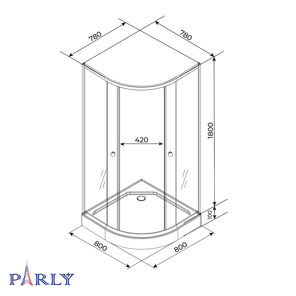 Душевой уголок с поддоном PARLY ZF81BN (80х80х193)