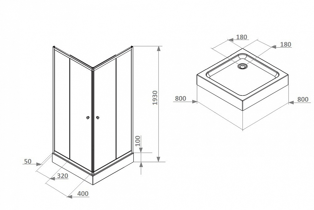 •Поддон белый из ABS-пластика, квадратный, с бортиком по периметру;