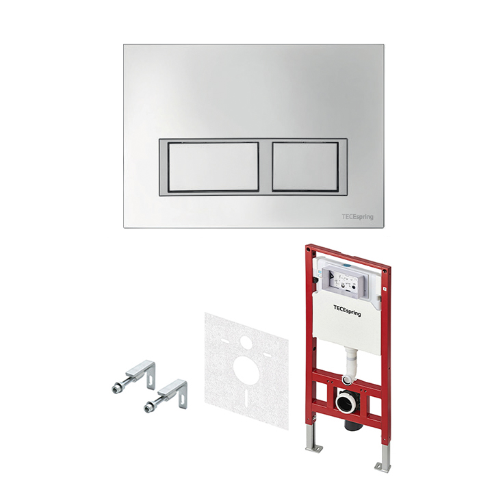 TECEspring комплект 4 в 1 Застенный модуль,панель смыва с прямоугольными кнопками, хром глянцевый