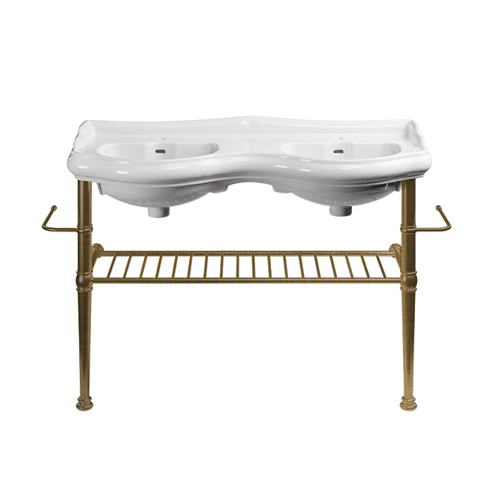 Консоль металлическая на ножках для раковины 120см, с полкой решеткой, с 2-я полотенцедержателями цвет бронза
