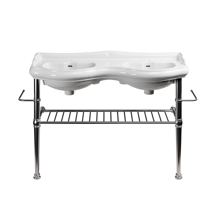 Kerasan RETRO Консоль металлическая 120 см, на ножках, полка решетка, 2 полотенцедержателя, цвет: хром