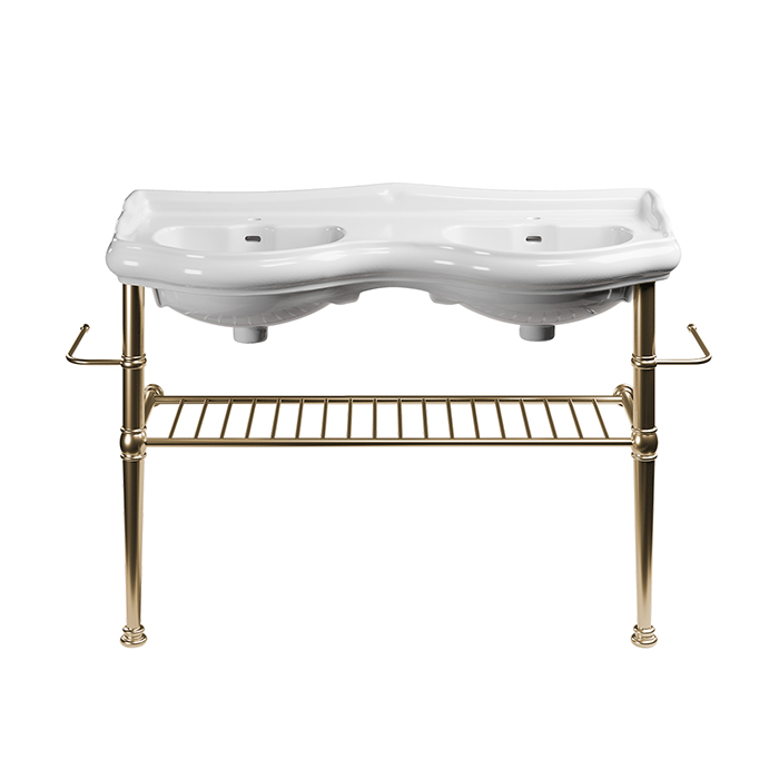 Kerasan RETRO Консоль металлическая 120 см, на ножках, полка решетка, 2 полотенцедержателя, цвет: золото
