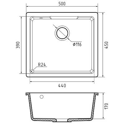 Кухонная мойка GranFest URBAN 4550, темно-серый. Для кухонного шкафа 50 см. Материал — кварцевый композит. Производство: Россия. Гарантийный срок: 5 лет.