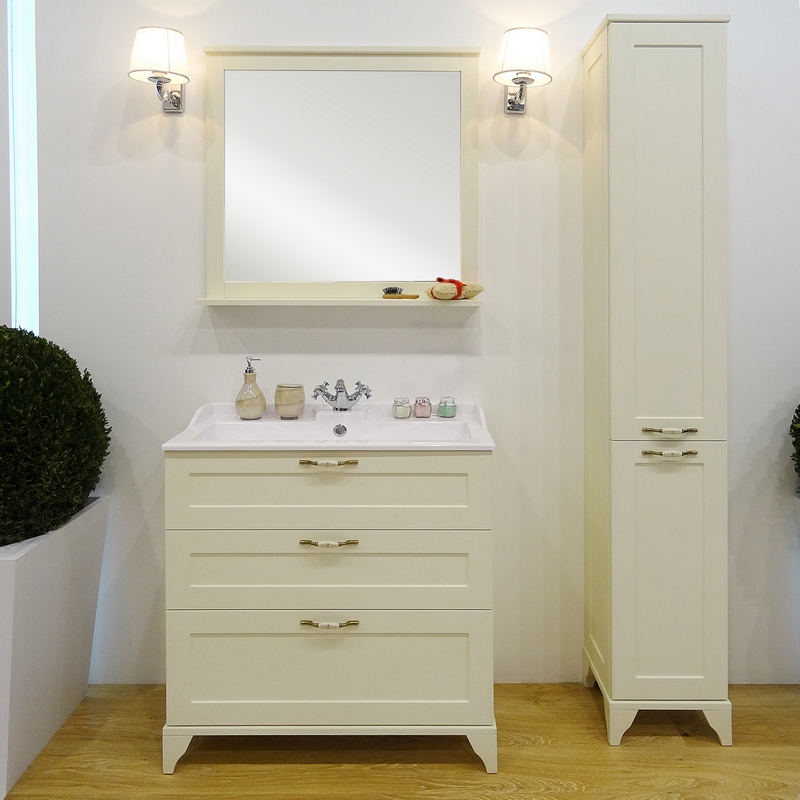 Тумба комплектуется раковиной ФАБИА из литого мрамора собственного производства АКВАТОН. Изящные формы, пристенные бортики и площадки делают её очень удобной. Тумба дополнительно снабжена надежными мебельными навесами. В тумбе установлены 3 ящика, и, помимо стандартного подключения водоснабжения и канализации (из стены), предусмотрена возможность подключения труб снизу.