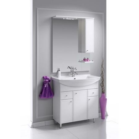 Тумба с раковиной Aqwella Барселона Люкс 85 с бельевой корзиной и зеркалом BA0108K+4620008197357
