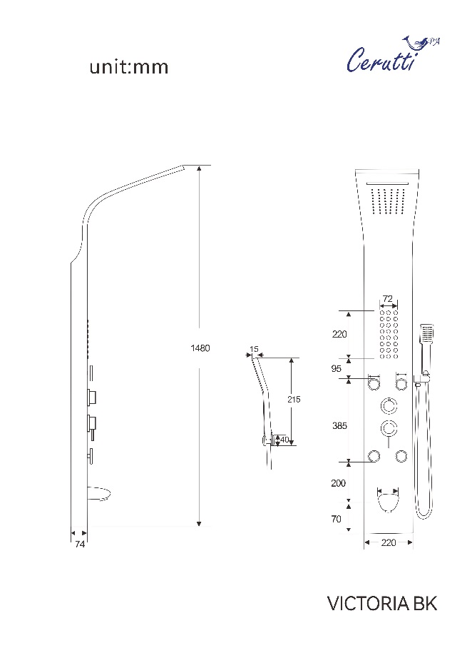 Удобная и многофункциональная душевая панель VICTORIA BK предназначена для установки внутри душевых уголков, ограждений, а также совместно с ванной.