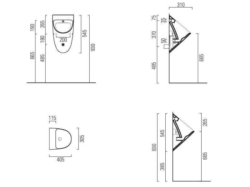 Писсуар подвесной безободковый GSI COMMUNITY 769511 300 мм х 300 мм, для крепежа FISRО, белый глянцевый: