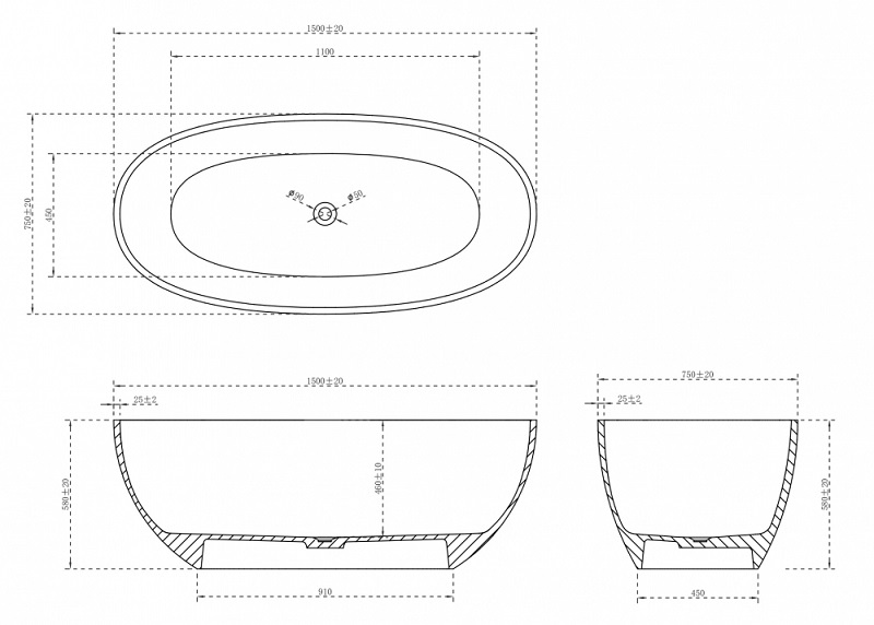 Компактные размеры. Длина —1,5 м: оптимально для стандартных ванных комнат без потери комфорта.
