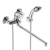 смеситель для ванны/душа, монтаж на стандартных эксцентриках (в комплекте: эксцентрики, металлические отражатели, уплотнительные прокладки), трубчатый поворотный излив 320 мм, угол поворота 360˚, аэратор PERLATOR, керамический картридж 35 мм, металлическая рукоятка, индикатор холодной/горячей воды, ручное переключение ванна/душ, душевой гарнитур в комплекте (душевая лейка Ø70 мм, металлический шланг 1500 мм, держатель для лейки).