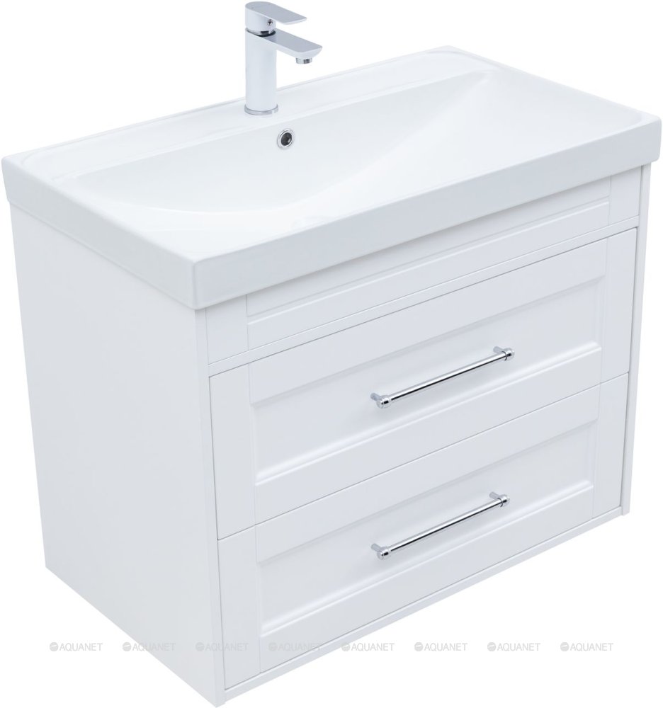Тумба с раковиной Aquanet Бостон new 80 (Flash) цв.белый сатин,ручки хром
