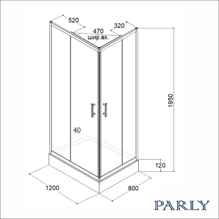 Уголок ZQ121B душевой PARLY с поддоном (120х80х195)