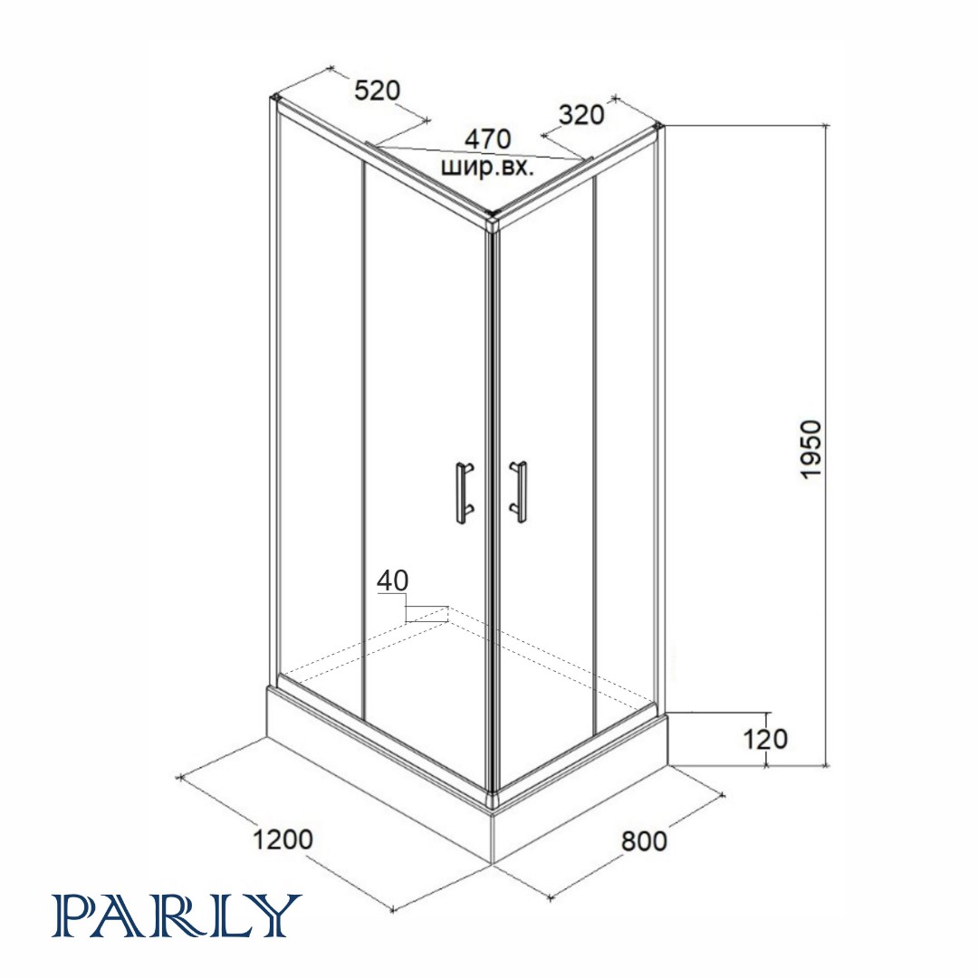 Уголок ZQ121F душевой PARLY с поддоном