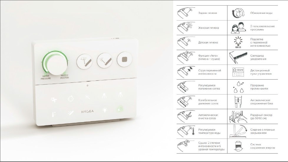 Унитаз-биде 38х59см., подвесной, безободковый, saniglaze, soft-close, с пультом управления, цвет: белый матовый
