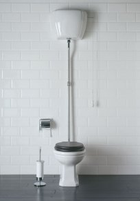 Унитаз с высоким бачком ,трубой и сиденьем чёрный дуб.