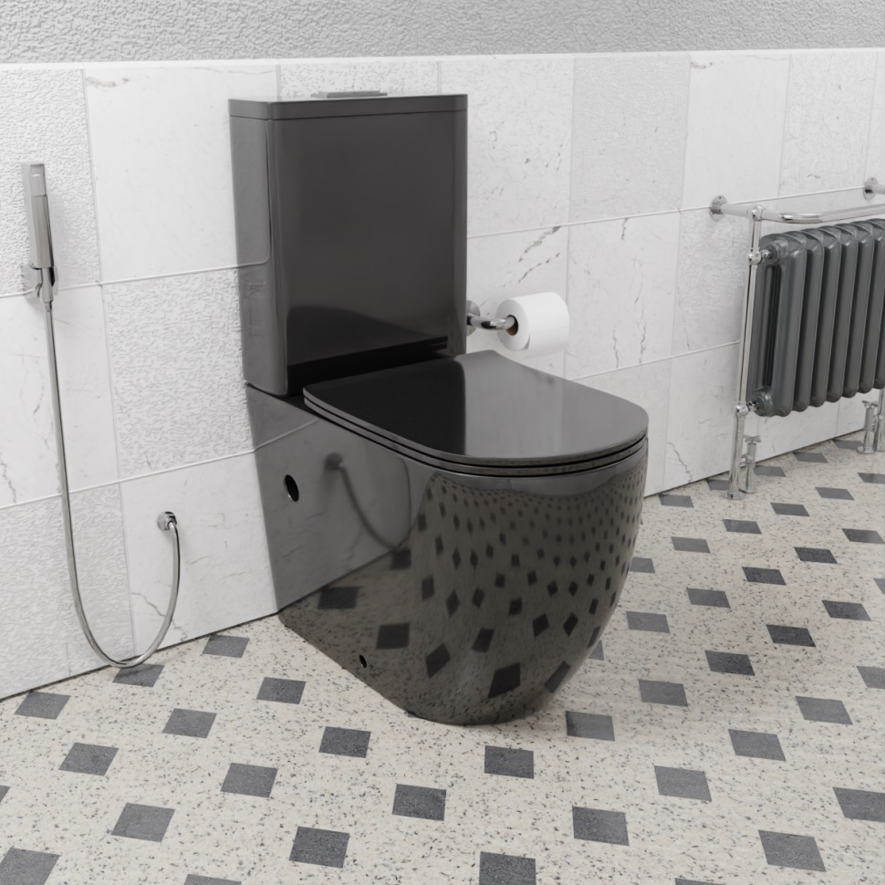 УНИТАЗ НАПОЛЬНЫЙ *БЕЗОБОДКОВЫЙ RIMLESS *Чёрный глянцевый Материалы для скачивания.
