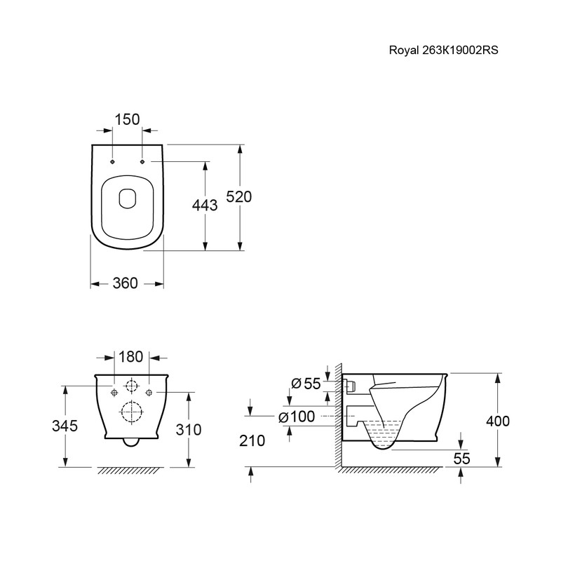 Унитаз Royal 263K19002RS (520*360*345) подвесной БЕЗОБОДКОВЫЙ