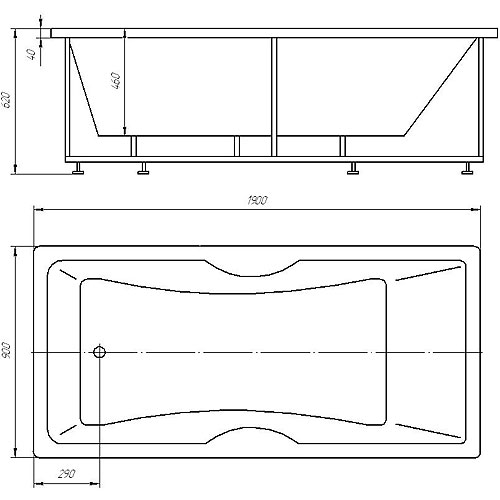 Размер: 160х75х62см.Ванна на каркасе ,с фронтальным экраном и сливным комплектом.