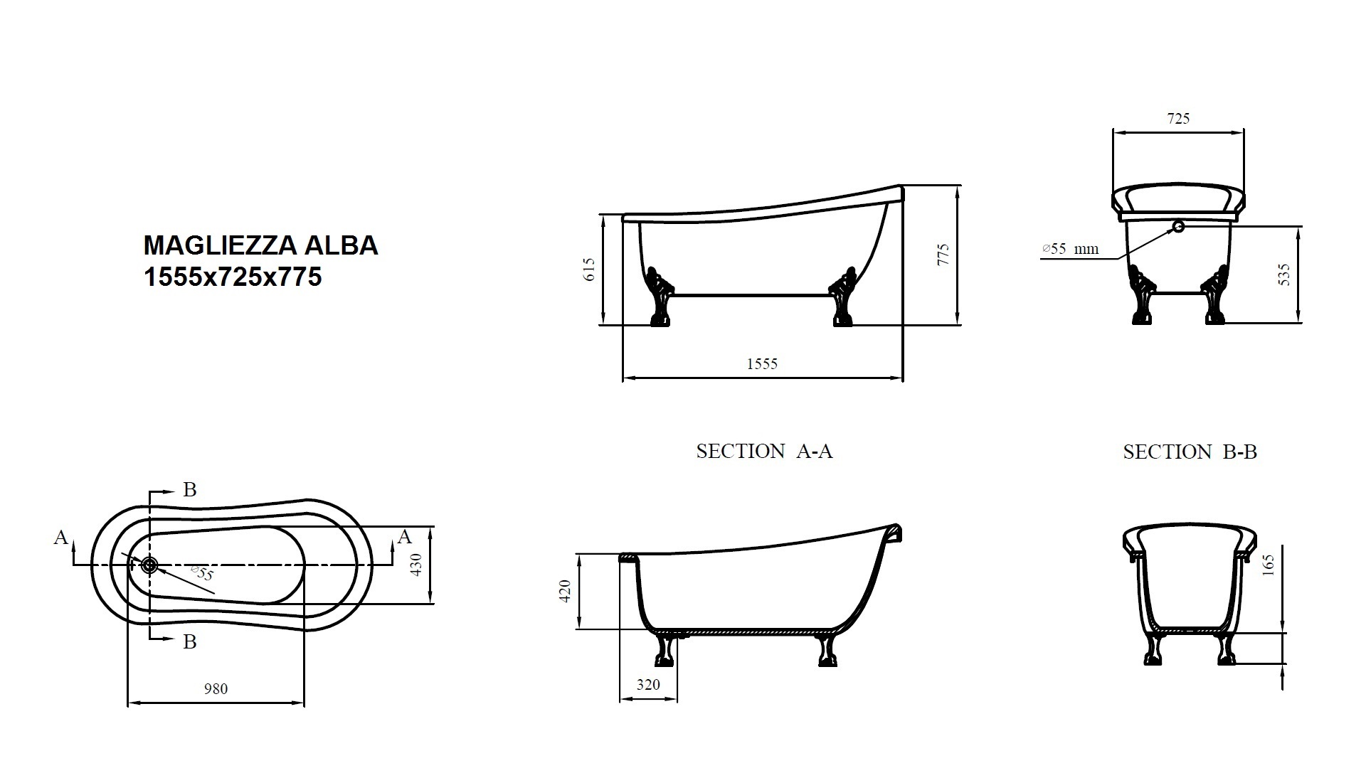 Ванна акриловая MAGLIEZZA ALBA155 хром