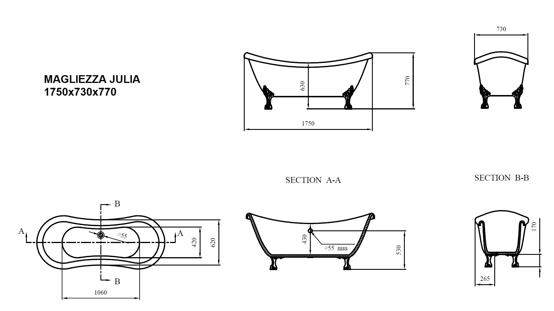 Отдельно стоящая ванна на ножках хром.1750×730×770/ Сифон в комплектацию не входит. Стоимость сифона арт .927 в хроме 8700руб