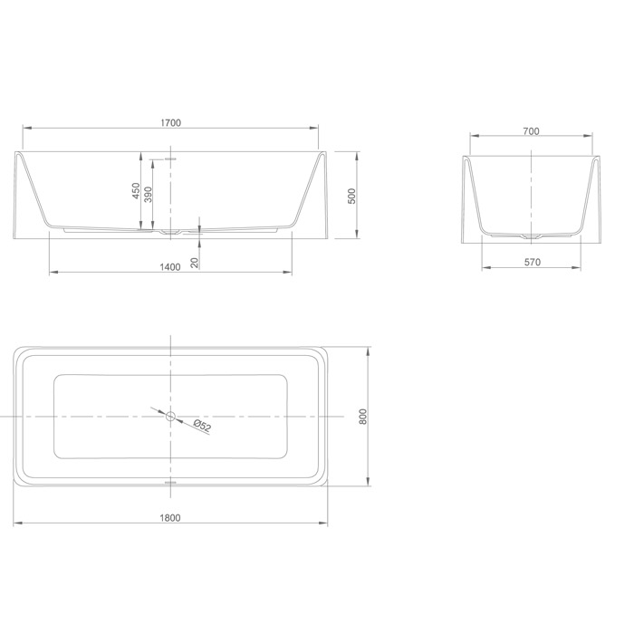 Ванна Knief Venice отдельностоящая 180х83,5х74,5см., с щелевым переливом, с экраном, без слива-перелива, цвет: белый